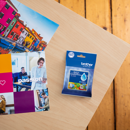 Originálna azúrová atramentová kazeta Brother LC552C v samostatnom balení je ideálna na kvalitnú farebnú tlač doma aj v kancelárii. Ponúka výťažnosť až 550 strán podľa normy ISO/IEC 24711.