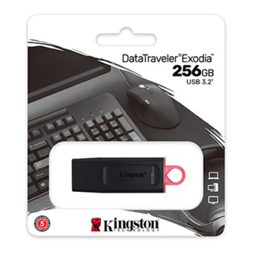 Kingston USB flash disk, USB 3.0, 256GB, DataTraveler Exodia, čierny, DTX/256GB, USB A, s krytkou