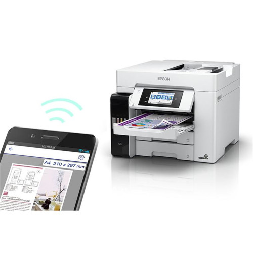 Tlačiareň je vybavená veľkým 10,9 cm farebným dotykovým displejom, ktorý uľahčuje ovládanie. Podporuje USB, Ethernet, Wi-Fi, Wi-Fi Direct aj NFC. S aplikáciami Epson Smart Panel, iPrint alebo Apple AirPrint môžete jednoducho tlačiť priamo zo smartfónu či tabletu. Samozrejmosťou je aj podpora PCL a PostScript pre firemné prostredie.