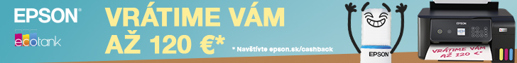 Kúpte si vybranú tlačiareň Epson EcoTank v období od 1.9.2025 do 31.12.2025, zaregistrujte sa do 30 dní od nákupu a získajte až 120 EUR späť. Viac informácií a úplné znenie podmienok nájdete na stránke epson.sk/cashback