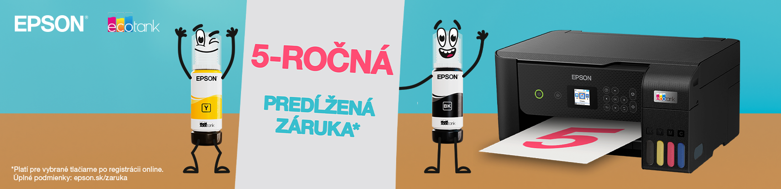 Kúpte si vybranú tlačiareň Epson v období od 1.4.2025 do 31.3.2026, zaregistrujte sa a získajte 5-ročnú predĺženú záruku Epson. Úplné informácie vrátane povolenia na uvedenie na trh nájdete na stránke epson.sk/zaruka