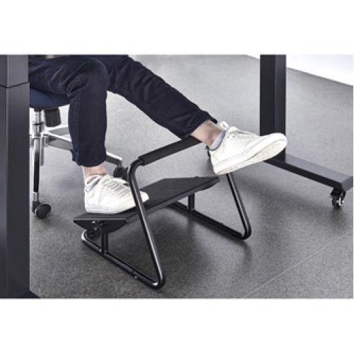 Powerton ERGO FLEX výškovo nastaviteľný podstavec pod nohy je ideálnym riešením pre každého, kto chce pri práci v sede zostať aktívny a dopriať svojim nohám maximálne pohodlie. Hojdacia konštrukcia podporuje aktívne sedenie, zabraňuje strnulej polohe dolných končatín a napomáha lepšiemu žilovému návratu krvi smerom k srdcu. Vďaka premyslenému dizajnu a možnosti natiahnutia nôh si jednoducho spríjemníte každodenné sedenie v kancelárii aj doma.